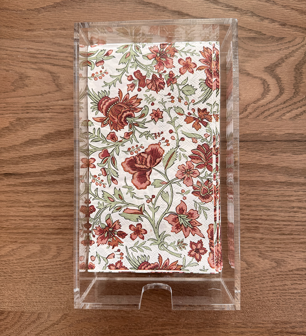 Michelle gifted us these adorable acrylic napkin holders to use in the bathroom. Honestly you could use them anywhere, but there’s just something fancy feeling about using a pretty napkin to dry your hands after you use the bathroom. We don’t actually have a towel hook in our master bathroom so I’m excited to have this!